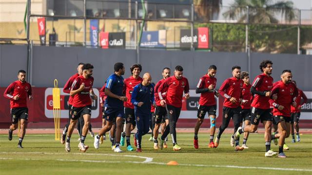 وأجرى لاعبو الأهلي عمليات الإحماء وجزء بدني قبل المشاركة في تدريبات الكرة والتي حرص خلالها الجهاز الفني على تنفيذ الجزء الخططي.