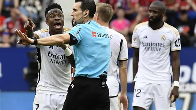 وأشهر الحكم مارتينيز مونويرا بطاقة صفراء لفينسيوس بسبب احتجاجه في المباراة ضد أوساسونا والتي ستمنعه من اللعب ضد أتلتيك بلباو في الدوري الإسباني، للإيقاف.