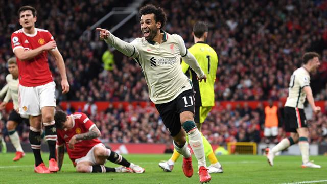 سيصبح محمد صلاح أول لاعب يسجل في 4 مباريات متتالية في الدوري الإنجليزي ضد مانشستر يونايتد، في حال تسجيله اليوم.