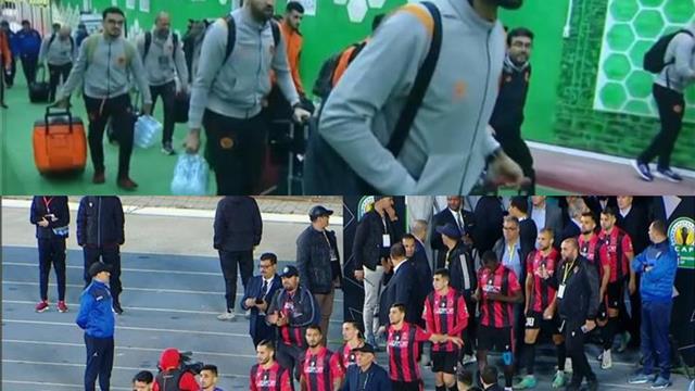 لحظة مغادرة الجهاز الفني ولاعبي نهضة بركان الملعب بعد الغاء المباراة أمام اتحاد العاصمة