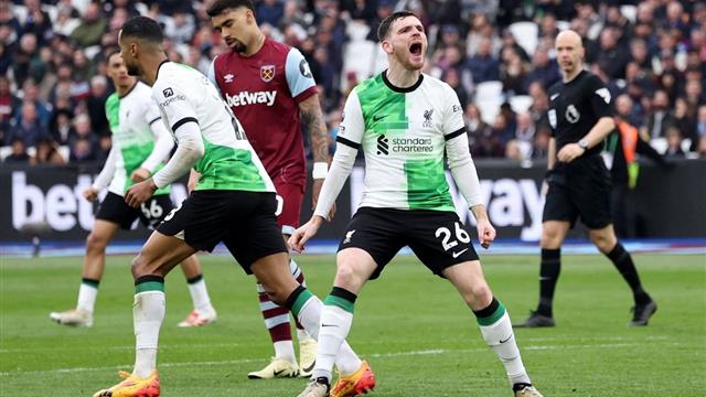 تعادل أندرو روبرتسون لاعب فريق كرة القدم الأول بنادي ليفربول للريدز، في المباراة التي تجمعه بـ وست هام، ضمن الجولة 35 من الدوري الإنجليزي الممتاز.