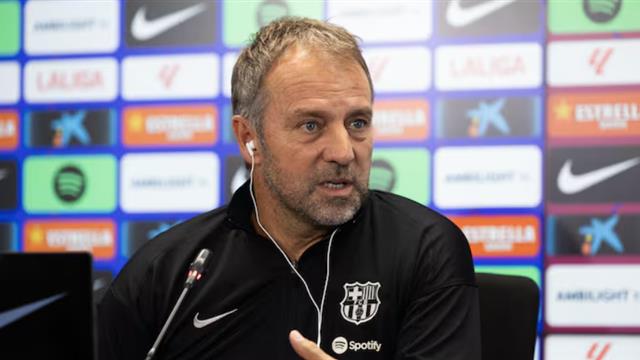 تحدث مدرب برشلونة، هانز فليك، خلال مؤتمر صحفي قبل مباراة الكلاسيكو أمام ريال مدريد في الدوري الإسباني.