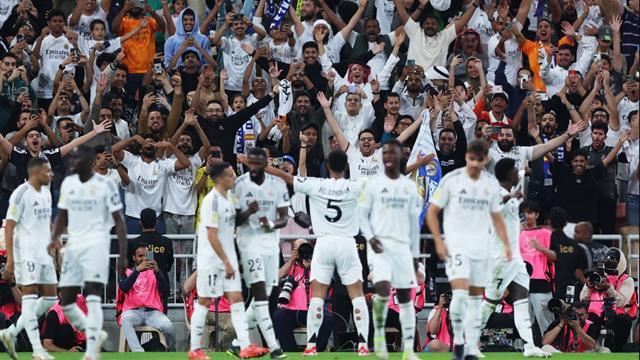 ترتد الكرة لمبابي ويسدد الفرنسي لكن يتصدى الحارس مجددًا لترتد وتصل إلى بيلينجهام ويسدد في الشباك ببراعة بالدقيقة 63 معلنًا هدف ريال مدريد الأول.