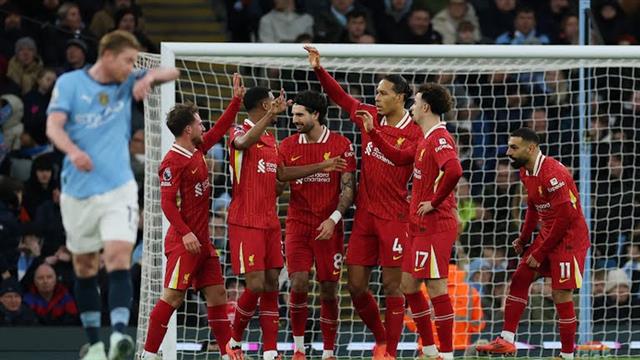 صنع نجم فريق ليفربول، محمد صلاح، هدفًا في المباراة الجارية حاليًا ضد مانشستر سيتي في بطولة الدوري الإنجليزي الممتاز، موسم 2024/25.