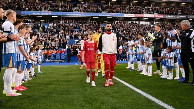 ونال ليفربول، بقيادة المدرب آرني سلوت وبمشاركة محمد صلاح الذي يرتدي شارة القيادة اليوم، ممرا شرفيا من جانب برايتون قبل بداية المباراة.