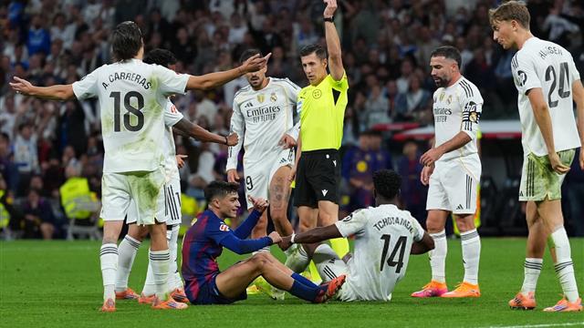 وبمجرد حصول بيدري على البطاقة الحمراء، لوحظت مشادة قوية بين لاعبي ريال مدريد وبرشلونة على خط التماس، دون معرفة السبب وراء بداية ما حدث.