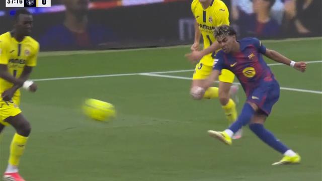أحرز لامين يامال الهدف الثاني لبرشلونة أمام فياريال، خلال اللقاء الذي يجمع بين الفريقين ضمن منافسات الدوري الاسباني لكرة القدم.