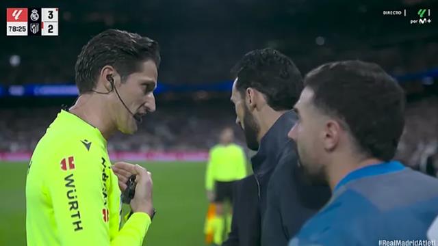 وظهر الحكم مونويرا مونتيرو وهو يتحدث مع ألفارو أربيلوا مدرب ريال مدريد، محاولاً التوضيح بأن الواقعة تستحق بطاقة حمراء، ولم تتم مراجعة اللقطة بتقنية الفار، وأصبح ريال مدريد يلعب بعشرة لاعبين.