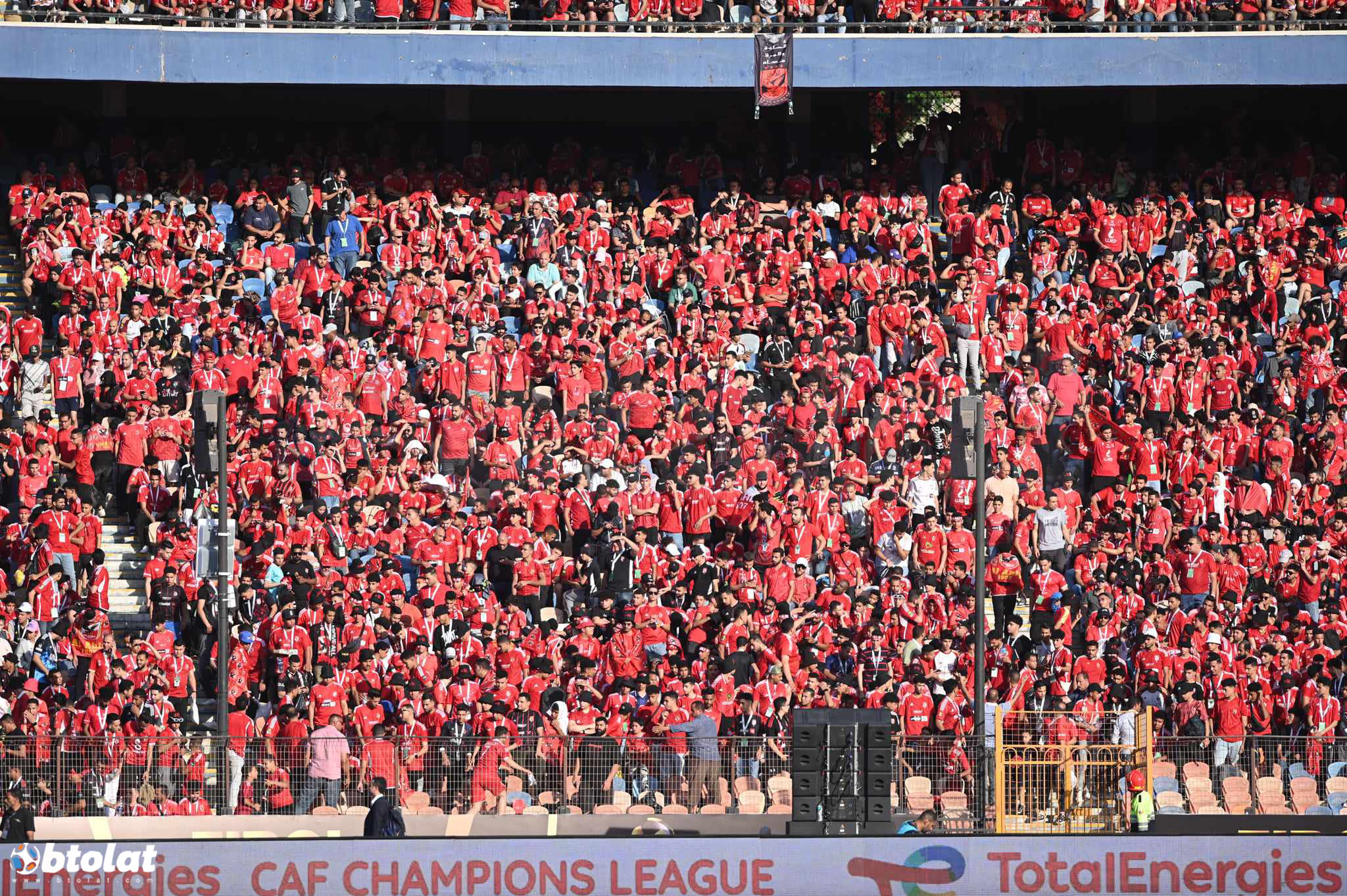 جماهير الأهلي تتفاعل مع الأغاني التشجيعية في استاد القاهره قبل مباراة الترجي بنهائي دوري أبطال إفريقيا