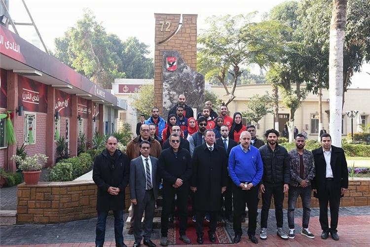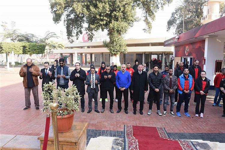 وقام وفد من مسؤولي النادي ولاعبيه في كل اللعبات الرياضية يتقدمهم محمود الخطيب رئيس مجلس الإدارة، بوضع أكليل من الزهور على النصب التذكاري لأبناء الأهلي بمقر الجزيرة، وقراءة الفاتحة ترحمًا على أرواحهم.