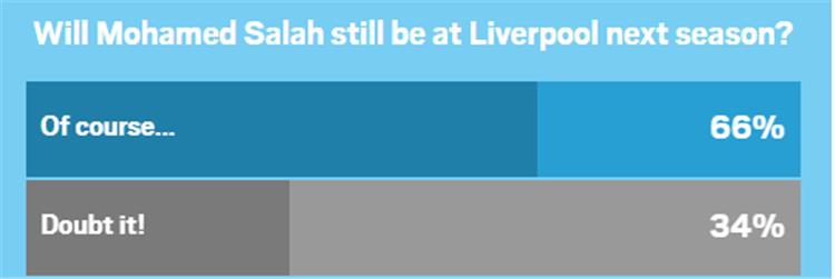 ترى الغالبية العظمى من جماهير نادي ليفربول أن اللاعب "محمد صلاح" سيظل رفقة فريقه الإنجليزي في الموسم المقبل.