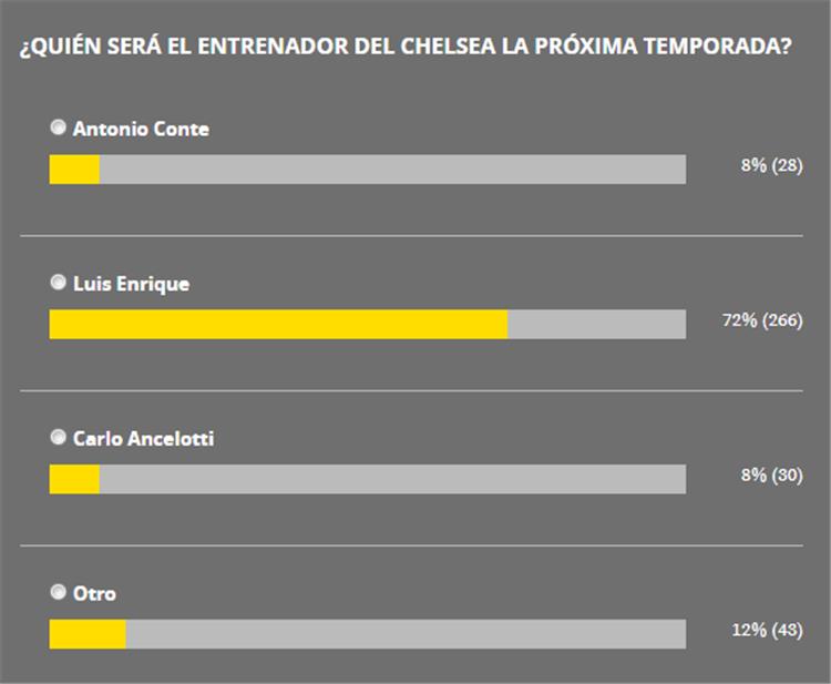 ووفقًا لاستفتاء الصحفية، فإن 72 % من الجماهير ترى أن مدرب برشلونة السابق "لويس إنريكي" هو من سيتولى خلافة "كونتي" في الموسم القادم.
