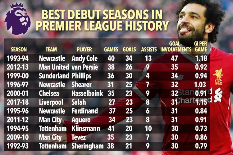 وواصلت:" أندي كول يتواجد في المركز الأول بتسجيله 47 هدفًا في موسم 1993/1994 مع نيوكاسل حيث سجل في موسمه الأول 34 هدفًا وصنع 13 هدفًا، ويستطيع صلاح أن يصل إلى هذا الرقم حيث أنه يسجل/ يصنع 1.15 هدفًا كل مباراة، مقابل 1.18 لكول ".