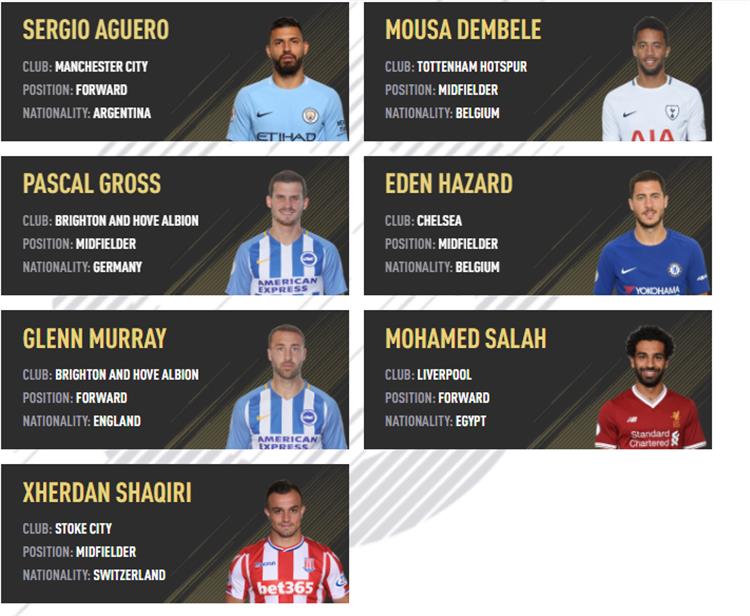وضمت قائمة المرشحين أيضًا كلاً من لاعب مانشستر سيتي "سيرجيو أجويرو"، ولاعب توتنهام "موسى ديمبيلي"، ولاعب تشيلسي "إدين هازارد" ولاعب برايتون "باسكال غروس".