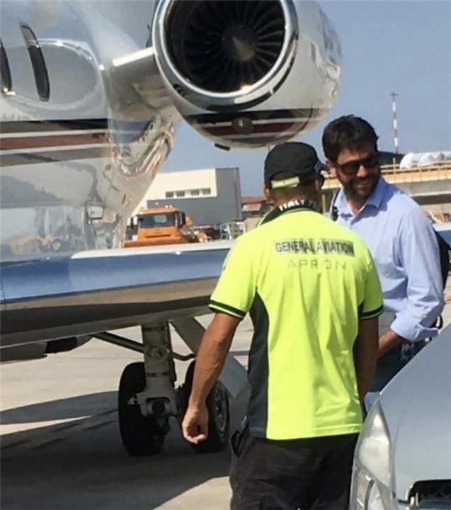 ووضع الصحفي عبر حسابه بعض الصور من وصول "أنييلي" إلى مطار "بيسا" من أجل السفر إلى "كالاماتا" في اليونان لمقابلة "رونالدو" اليوم لحسم رحيله إلى صفوف يوفنتوس.
