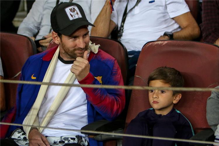 تواجد "تياجو" نجل لاعب فريق برشلونة "ليونيل ميسي" بجواره والده في مدرجات الكامب نو خلال مواجهة فريق إنتر ميلان يوم الأربعاء الماضي في دوري أبطال أوروبا.