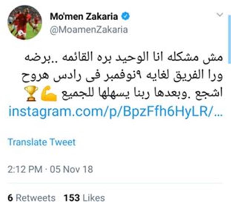 علق مؤمن زكريا لاعب الفريق الأول لكرة القدم بالنادي الأهلي، على استبعاده من قائمة الأحمر لمواجهة الترجي التونسي بدوري أبطال إفريقيا.