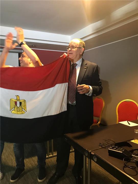 وتبادل الوفد المصري التهاني، لا سيما وأن المجهود الكبير والمبذول طوال الأيام الماضية، تم تكليله بكل نجاح، ونالت مصر الهدف المطلوب، وفازت بحق استضافة الكان في الصيف المقبل.