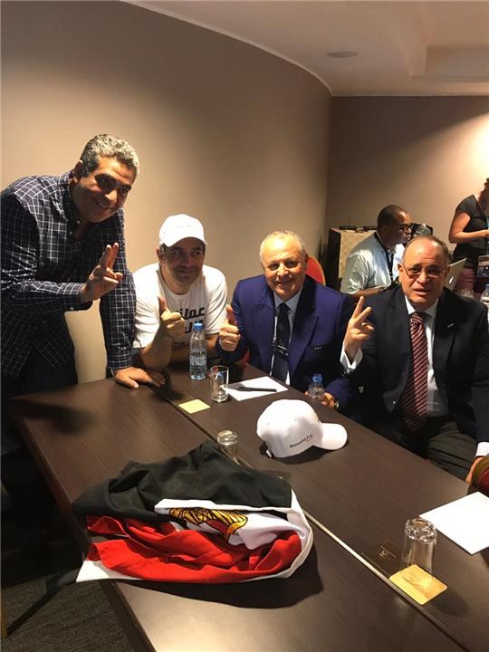 وضم الوفد المصري، المهندس هاني أبو ريدة رئيس اتحاد الكرة، وأحمد مجاهد وكرم كردي عضوي المجلس، ومحمد كامل رئيس شركة بريزنتيشن سبورتس، ومصطفى طنطاوي مدير الإعلام والاتصال بالشركة، وفريق عمل الشركة.