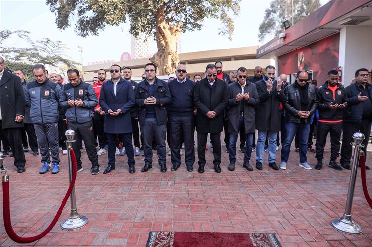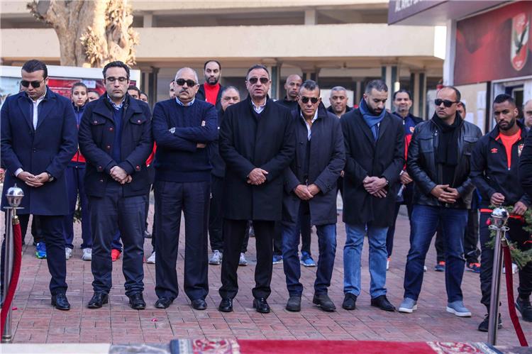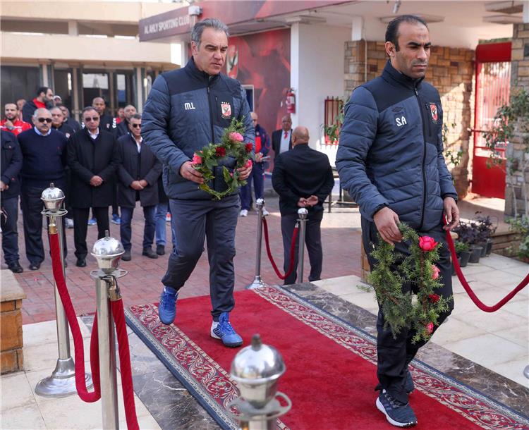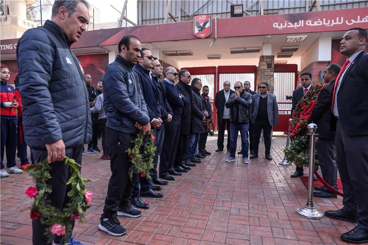وقام وفد من النادي يتقدمهم الكابتن الخطيب رئيس النادي وبرفقته مجلس الإدارة، والعميد محمد مرجان المدير التنفيذي، ورءوف عبدالقادر مدير النشاط الرياضي، بالإضافة إلى مارتن لاسارتي المدير الفني للفريق الأول لكرة القدم، وسيد عبدالحفيظ مدير الكرة، وحسام عاشور كابتن الفريق هذا إلى جانب الأجهزة الفنية وكباتن الفرق الرياضية في كل الألعاب، بوضع أكليل من الزهور على النصب التذكاري لأبناء الأهلي وقراءة الفاتحة ترحمًا على أرواحهم.