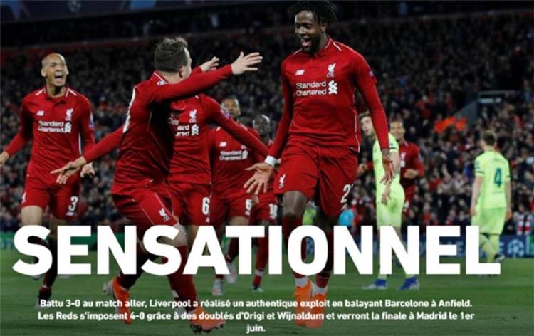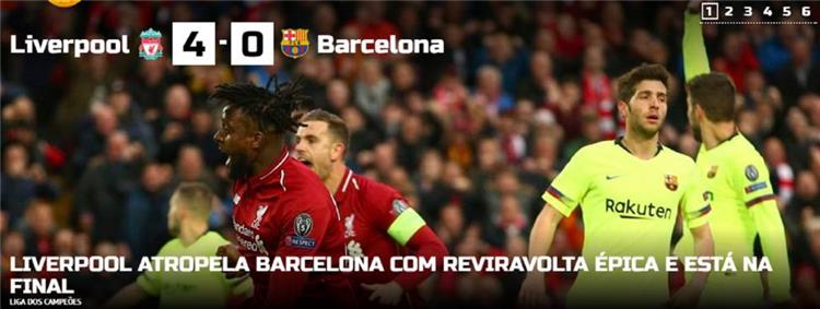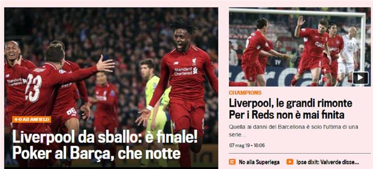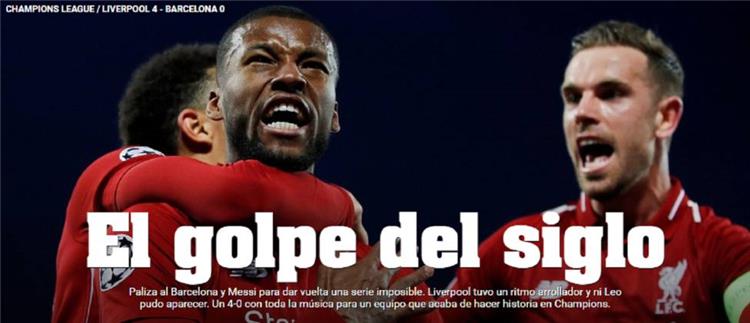 "معجزة كلوب في ليفربول... بعد 14 عامًا من المباراة النهائية في إسطنبول، ليفربول يفاجأ العالم مرة أخرى، وبرشلونة يسقط تمامًا مثلما حدث في العام الماضي بربع النهائي ضد روما، يبدو أنّ فارق ثلاثة أهداف في الذهاب ليس كافيًا لبرشلونة للتأهل".