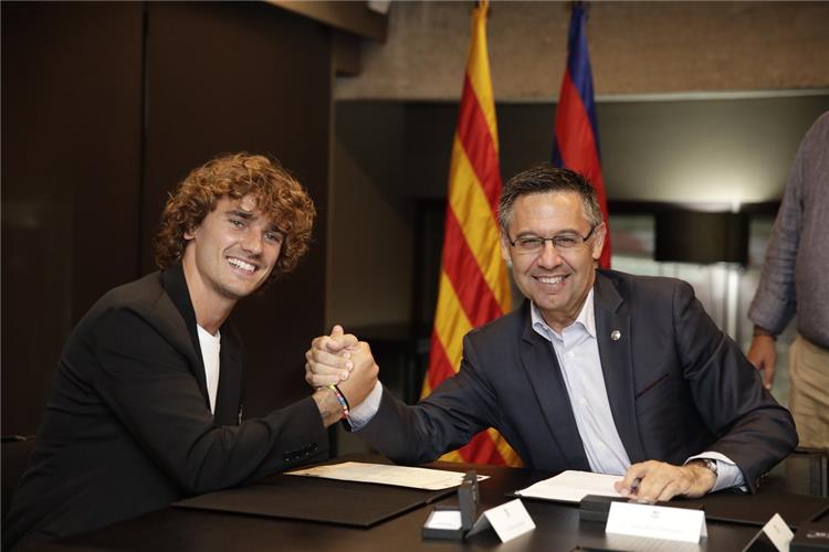 رحب جوزيب ماريا بارتوميو، رئيس نادي برشلونة الإسباني، بالفرنسي أنطوان جريزمان، المنضم حديثًا للبارسا.