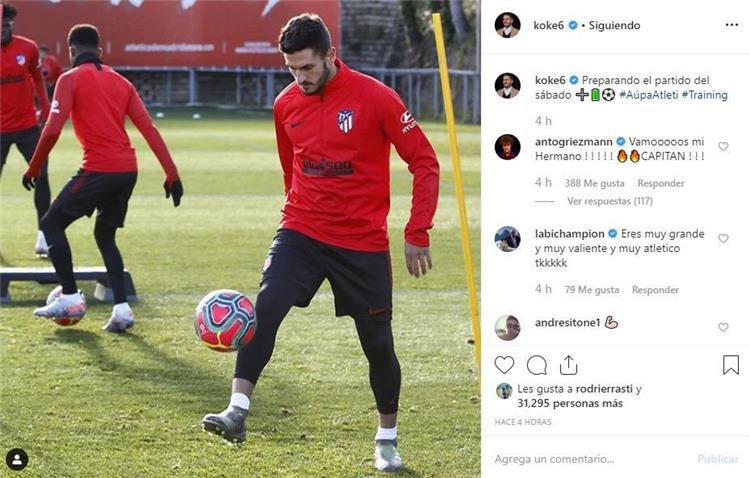 ونشر كوكي صورة له عبر "إنستجرام" من التدريبات معلقًا: "نستعد لمباراة السبت"، وعلّق جريزمان: "هيا أخي القائد!".