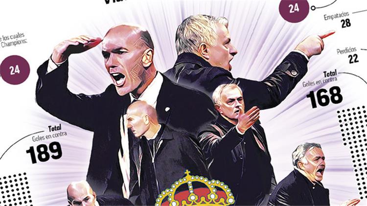 وقالت صحيفة "ماركا" الإسبانية، إن زيدان حقق 119 انتصارا و37 تعادلا و22 هزيمة في 178 مباراة مع ريال مدريد، بينما مورينيو يملك 128 انتصارا و28 تعادلا ونفس عدد من الهزائم مع زيزو.