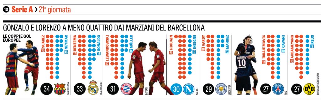 قامت صحيفة (لا جازيتا ديللو سبورت) الإيطالية، بنشر تقرير عبر صفحاتها الصادرة صباح اليوم، تبرز من خلاله أفضل الثنائيات في الموسم الحالي (2015-2016) في الدوريات الخمس الكبرى.