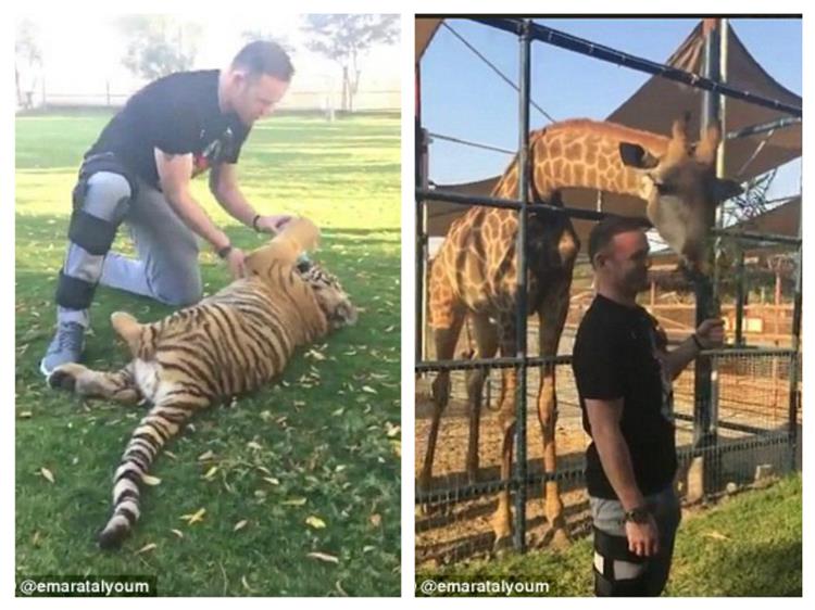 خاطر واين روني قائد مانشستر يونايتد والمنتخب الانجليزي، بحياته وداعب أحد النمور في زيارته لحديقة الحيوان في مدينة دبي الإماراتية، حيث يقضي أجازته هناك برفقة زوجته كولين.