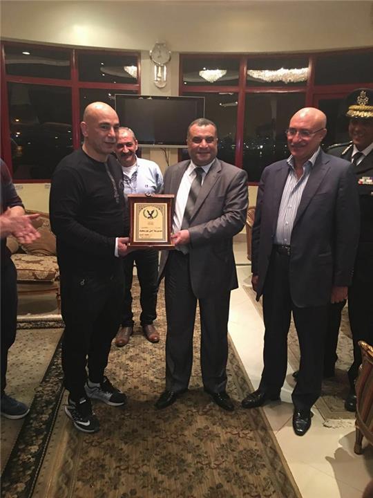 كرَّم اللواء محمود الديب مساعد وزير الداخلية مدير أمن بورسعيد حسام حسن المدير الفني لنادي المصري البورسعيدي.
