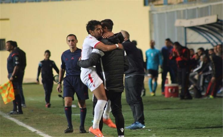 وحرص حمودي على التوجه لمقاعد بدلاء الزمالك بعد تسجيله هدف لصالح فريقه من أجل أبو جبل خصيصاً وقام باحتضانه .