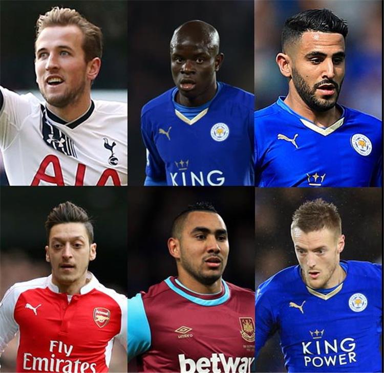 وشهدت القائمة وجود ثلاثة لاعبين من ليستر سيتي هم " رياض محرز، جيمي فاردي، ونجولو كانتي "، بالإضافة إلى تواجد نجم توتنهام هاري كين، وصانع ألعاب آرسنال، مسعو أوزيل، بالإضافة إلى تواجد الفرنسي، باييه، لاعب وست هام.