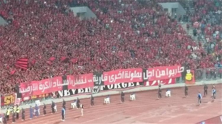 ورفعت الجماهير لافتة مكتوب عليها "حاربوا من أجل بطولة أخرى قارية.. لنظل نحن أسياد الكرة الأرضية".