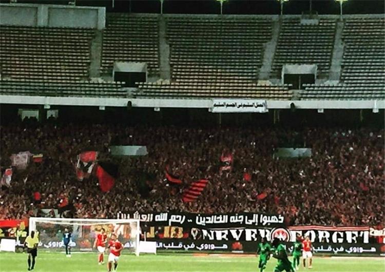 وأوقف جماهير الأهلي، المتواجدين في ملعب برج العرب لمساندة الأهلي في مباراة يانج أفريكانز، الهتافات والتشجيع في الدقيقة 20 ورفعوا لافتة مكتوب عليها "ذهبوا إلى جنة الخالدين رحم الله الـ20".