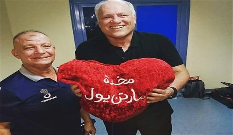 وعبر صفحته الرسمية على "فيسبوك"، نشر "يول" صورة "المخدة" التي تحمل اسمه، برفقة مساعده ليندمان، ورباعي الفريق سعد سمير ورمضان صبحي ومؤمن زكريا وسعد سمير.