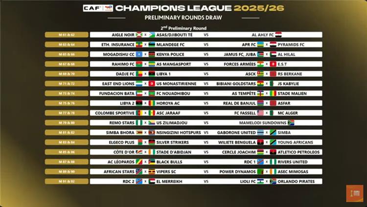 مواجهات الدوري التمهيدي لدوري أبطال إفريقيا 2025 -2026