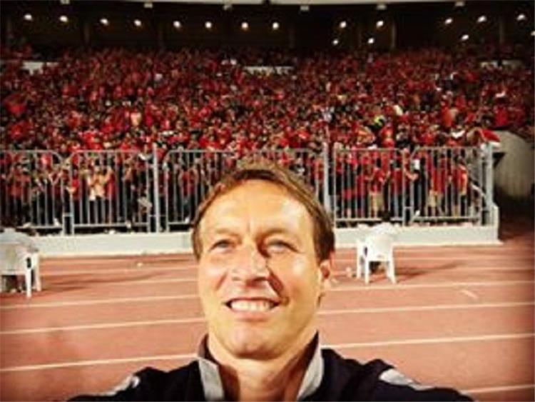 حرص مايكل ليندمان مدرب الأحمال بفريق النادي الأهلي، على إلتقاط صورة "سيلفي" مع الجماهير الحمراء المتواجدة بمدرجات ملعب استاد برج العرب، لحضور مواجهة أسيك ميموزا الإيفواري.