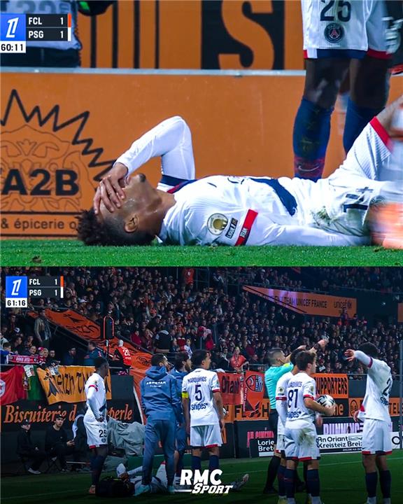 وغادر ديزري دوي جناح باريس سان جيرمان ملعب المباراة بعد أن تم نقله على نقالة، ولم يكن قادرًا على وضع قدمه على الأرض.