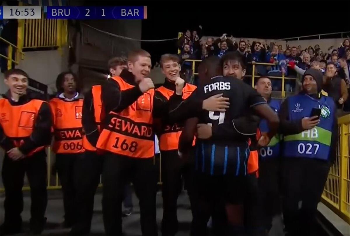 أحرز فوربس الهدف الثاني لفريق لكلوب بروج أمام برشلونة، خلال المباراة التي تجمع بين الفريقين في الجولة الرابعة بمرحلة الدوري لدوري أبطال أوروبا.