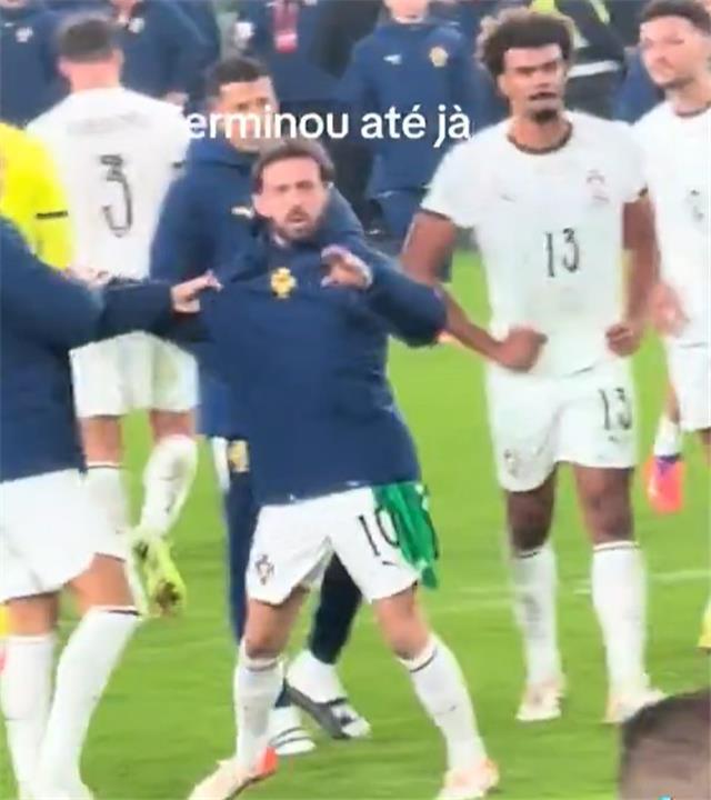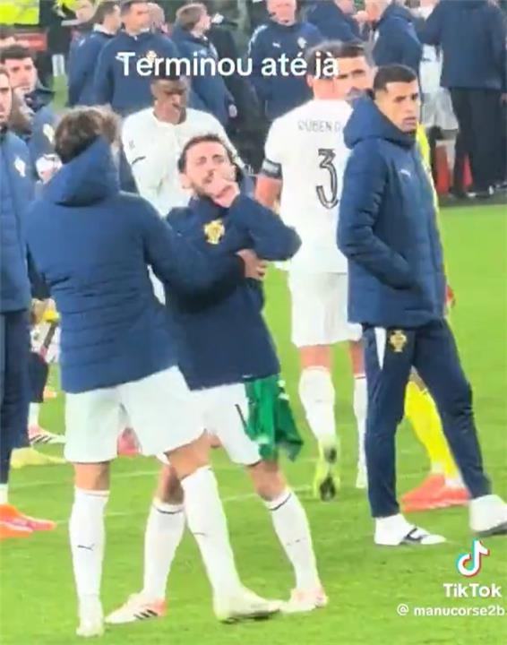 وواصل برناردو سيلفا سيره نحو الجماهير وأشار بغضب إلى أحدهم، وكان كريستيانو رونالدو قد دخل في جدال حاد مع جماهير منتخب أيرلندا أيضاً.