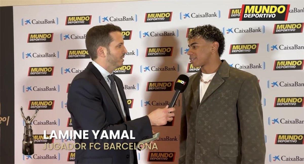 وتسلم لامين يامال جائزة "موندو ديبورتيفو" عن موسمه الرائع مع برشلونة العام الماضي، وقال: "إنه لشرف لي ولعائلتي وأصدقائي، أنا سعيد للغاية وآمل أن يكون هذا العام أفضل".