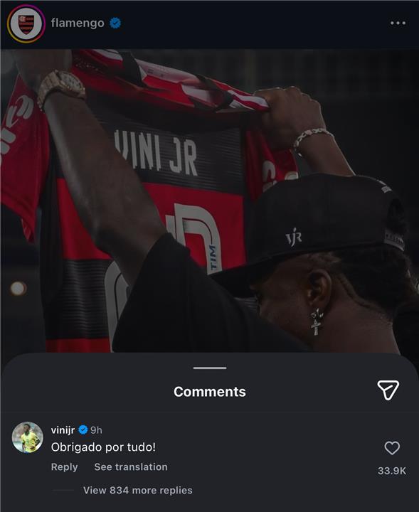 ورد فينيسيوس على بيان فلامينجو، حيث أتم: ''شكرًا على كل شئ''.
