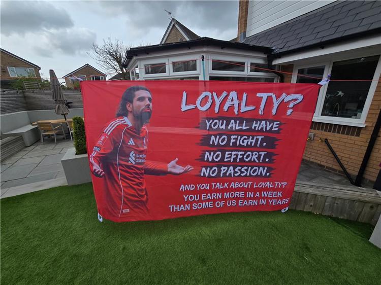 وقام أحد جماهير ليفربول بإعداد لافتة من المتوقع أن يتم حملها في الملعب، وتتضمن عدة رسائل: "الولاء؟ أنتم جميعاً بدون روح قتالية وبدون مجهودات وبدون شغف".
