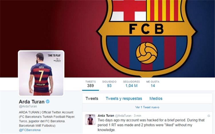 أكد أردا توران لاعب برشلونة السباني بأن حسابه على تويتر قد تم إختراقه منذ يومين من قبل مجهولين.