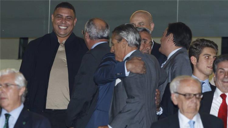 ألتقطت عدسات الكاميرات تواجد الأسطورة البرازيلية، رونالدو، المُلقب بـ " الظاهرة " في مدرجات ملعب " سانتياجو بيرنابيو " .