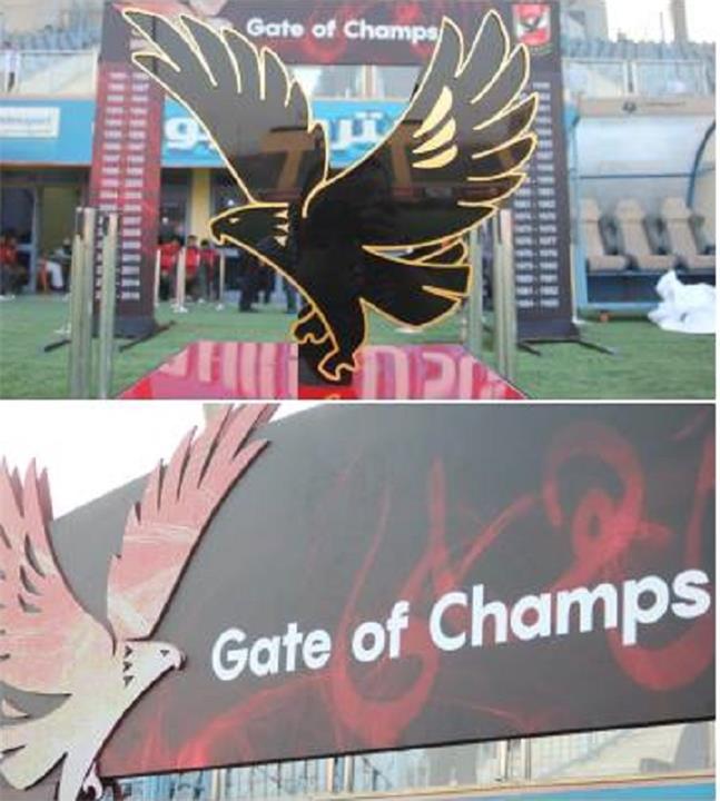 حرصت الشركة الراعية للنادي الأهلي "صلة" على وضع مجسمات على هيئة بوابة يدخل من خلالها لاعبو المارد الأحمر مواجهة فريقهم أمام الاسماعيلي مساء اليوم.