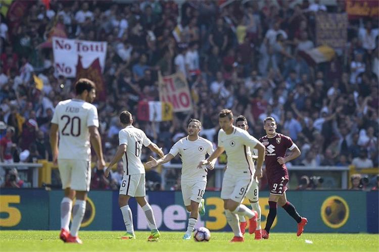 توتي الذي سيتم عامه الـ40 بعد يومين، دخل بديلاً في الشوط الثاني، ليتسلم شارة القيادة من دي روسي، ويسجل هدف تقليص الفارق لروما في الدقيقة 55، لكن هدفه لم يكن كافياً، في أن يخرج روما بنقطة من المباراة.