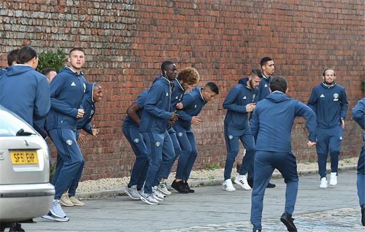 وطلب جوزيه مورينيو مدرب اليونايتد من اللاعبين، إجراء التدريبات الإحمائية في جراج السيارات، قبل ساعات قليلة من بدء المباراة.