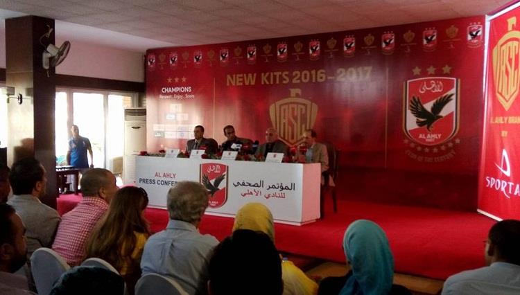 عقد مسئولو النادي الأهلي مؤتمرًا صحفيًا اليوم الثلاثاء، من أجل الإعلان عن القمص الجديد للنادي، وذلك في حضور سيد عبد الحفيظ، مدير الكرة، وشرين شمس، المدير التنفيذي للنادي ونادر خليل مدير التسويق ووليد مهدي منسق حقوق الرعاية.